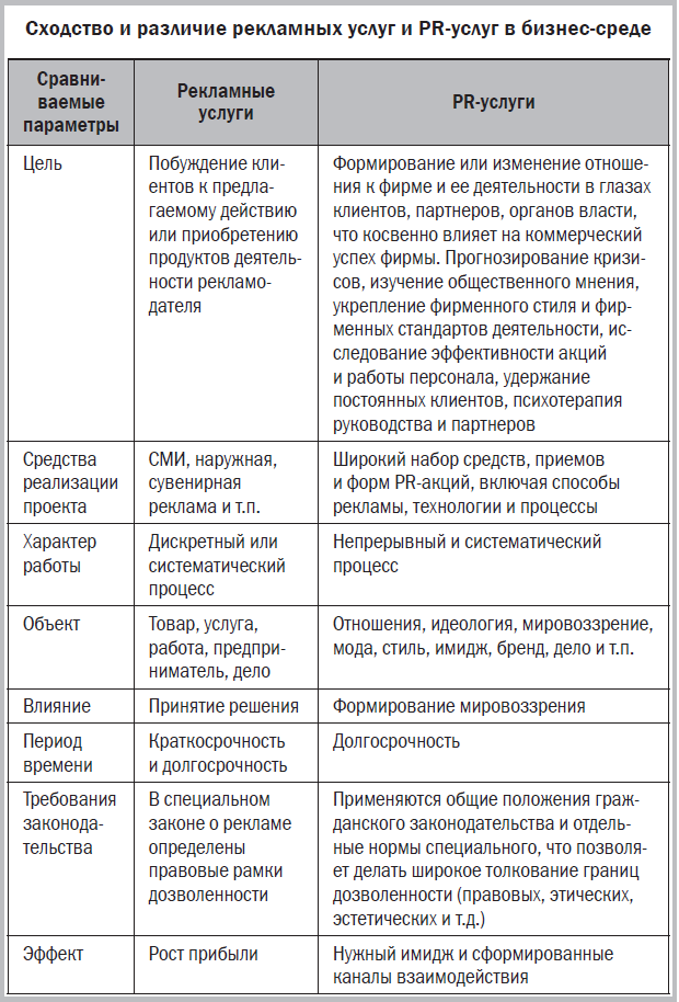 Мнение специалиста. Оставляя рекламе право на существование, Эл и Лора Райс в книге «РАСЦВЕТ ПИАРА И УПАДОК РЕКЛАМЫ» распределяют акценты следующим образом: пиар создает бренды, реклама их поддерживает.