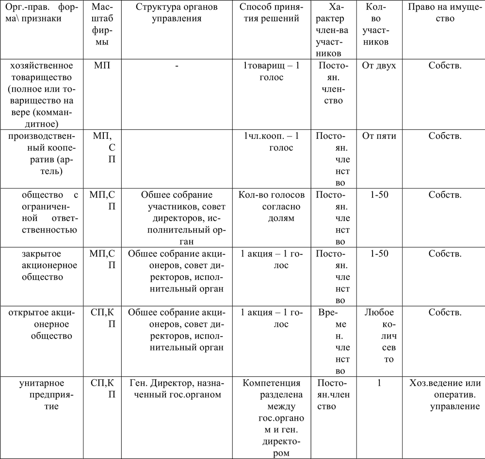 1. Организации с личным участием участников – это хозяйственные товарищества и производственные кооперативы, где участники имеют по одному голосу при голосовании в органах управления, а степень влияния участников на дела компании главным образом зависит от их личного участия в ее деятельности.