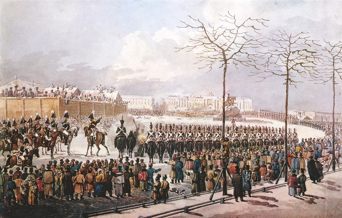 Своих планов декабристы так и не осуществили. Ни одна декларируемая ими цель не была достигнута. И уж совсем нелепыми выглядели их действия в свете тех страшных обвинений, которые вынес им суд95. Они долго стояли, надеясь, что Николай I пойдёт на уступки, но царя это только ожесточило, и с наступлением сумерек, боясь, что взбунтуется ещё и толпа, царь отдал приказ расстреливать повстанцев картечью. То, что можно лишь условно назвать восстанием, было жестоко подавлено.