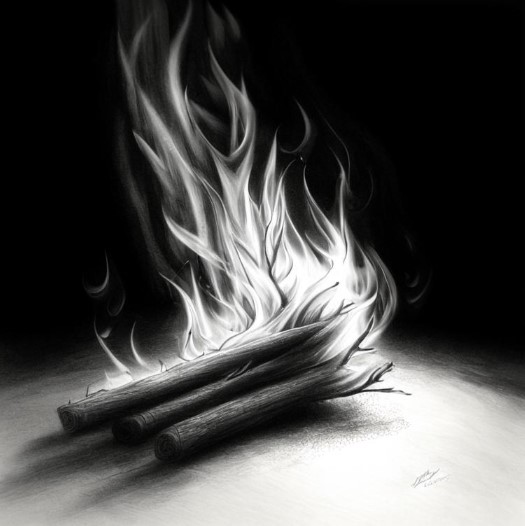 Вернувшись ко мне с комками сухой растительности и поблескивающим стержнем, Отшельник бросил в очаг на улице траву и принялся чиркать по стержню чем-то незаметным, скрытым в его ладони, высекая искру.