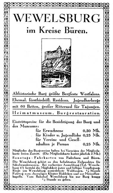 Рекламная листовка конца 20-х годов, которая приглашает посетить Вевельсбург как туристический объект