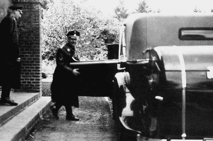 Генрих Гиммлер на пути из охотничьего домика в Вевельсбург 1935 год