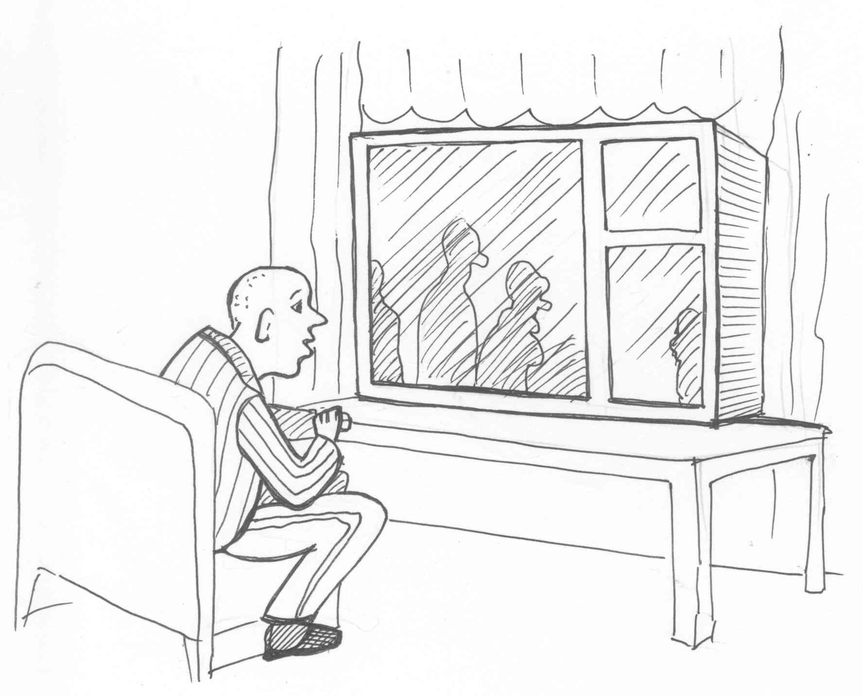 Мужику не спалось, он сидел у облупившегося окна, облокотясь на кухонный столик, поглядывал на перемигивающийся экран телевизора. Спроси его, что показывали хоть минуту назад, он бы и не вспомнил. Но можно сказать с полной определенностью, что на следующий день, он как обычно купит пива, сигарет, замечтается о дорогой машине, неосознанно возжелает собачьих консервов и проявит повышенный интерес к женским прокладкам и тампонам… В общем, мужик безмятежно исполнял свою потребительскую роль в общении между трудовым коллективом телевизионного предприятия, зарабатывавшим на телевизионной рекламе, и рядовым зрителем.
