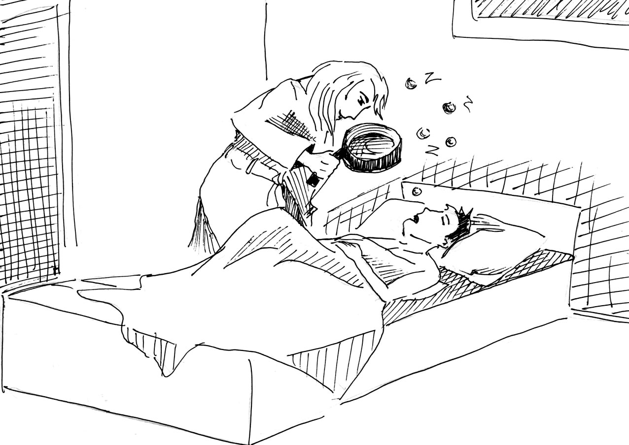 Муж крепко спал. Он, раскинув руки, лежал на спине и храпел. Его храп напоминал жужжание шмеля, посаженного внутрь стакана. Шмель метался где-то в районе подушки. Он издавал высокотональный гул, сквозь который слышалась тонкая вибрация крылышек. Взлетит на секунду-другую, на секунду-другую успокаивается. Опять взлетит, опять успокаивается. Но в отличие от шмеля этот человеческий экземпляр издавал куда более громкие звуки.