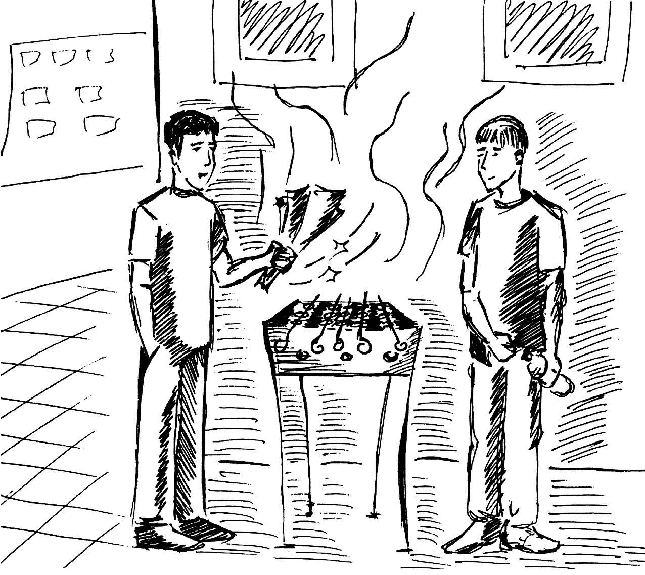 Вечно пьяный бывший моряк курил на балконе и исподволь посматривал на происходящее внизу. После схода с палубы его постоянно покачивало, и он не понимал, как при такой качке можно жарить шашлыки.