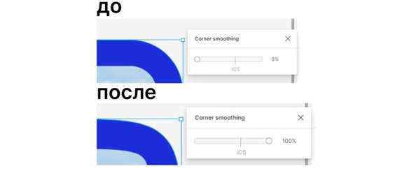 Нажав на 3 точки справа появится окно слева. Перемещаем ползунок и одновременно смотрим, как изменится скругление. Если присмотреться внимательно, можно увидеть, каким образом меняется скругления по этому ползунку.