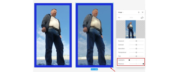 Shadows – тень в переводе. Но на самом деле это настройка освещения центрального объекта фото. Передвигая ползунок, увидите изменения.