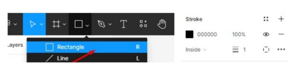 Рисуем ещё один прямоугольник. В правой колонке справа от «Stroke» нажимаем знак «+». Появится рамка чёрного цвета толщиной 1 px.