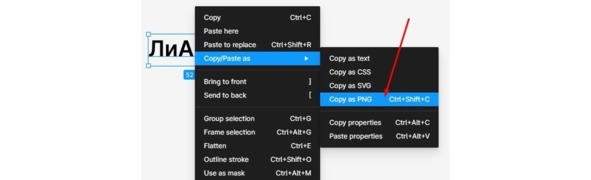 Теперь нам надо этот текст преобразовать в PNG-формат. Для этого сохраним его в PNG. В правой колонке в разделе «Export» выберем значения указанные стрелками и нажмём кнопку. Сохраним к себе на компьютер файл в формате png.