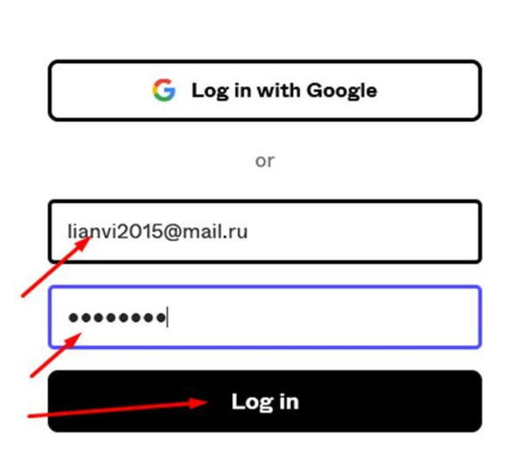Проверяем, чтобы в первой строке был ваш email, который указали при регистрации. Вводим свой пароль, который вы указали при регистрации и нажимаем кнопку «Log in».