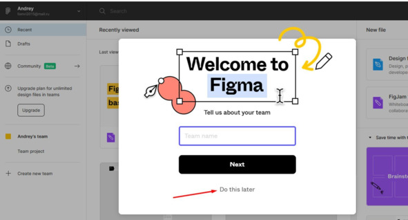 Теперь откроется окно с приглашением назвать вашу «команду». Нажимаем по стрелке «Do this later». На самом деле «команда» нам не нужна на обучении.