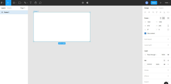 Представляем, что центральная часть – это наш стол, на котором мы будем всё делать. Но вы же не будете рисовать на столе, вам нужен лист бумаги. Вот теперь на наш стол кладём лист бумаги. То есть добавляем Frame (в переводе – рамка). Горячая клавиша для выбора фрейма –