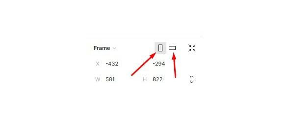 Ориентация листа (фрейма) альбомная или портретная. Нажимайте по очереди кнопки, указанные стрелками.