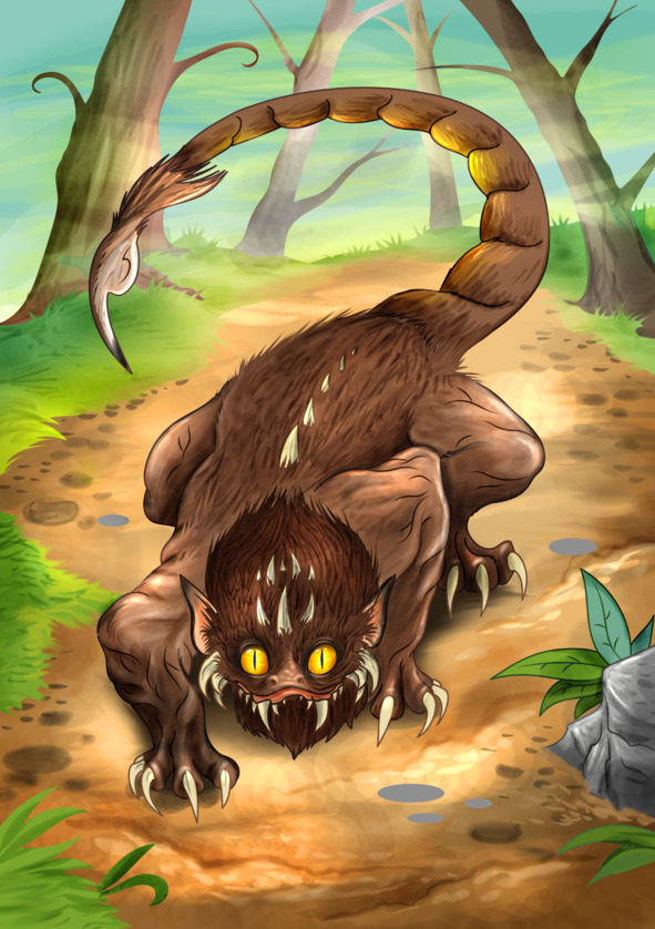 Мантикора приготовилась к прыжку. Она прижалась к земле и подалась немного вперёд. Перевитые мышцами, словно канатами, лапы подрагивали от напряжения, как будто зверь накапливал в них силу, чтобы совершить стремительный и смертельный рывок. Длинный и мощный хвост, заканчивающийся острой костяной иглой, как маятник метронома, двигался из стороны в сторону. Я, стараясь не моргать, смотрел ей прямо в застывшие жёлтые глаза, в которых пульсировал вертикальный зрачок, и ждал. Всем было известно, что, если уж ты встретился взглядом с этой хищницей, не моргай! И чем дольше ты сможешь выдержать, тем дольше проживёшь.