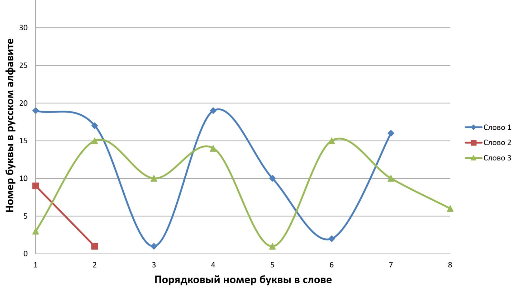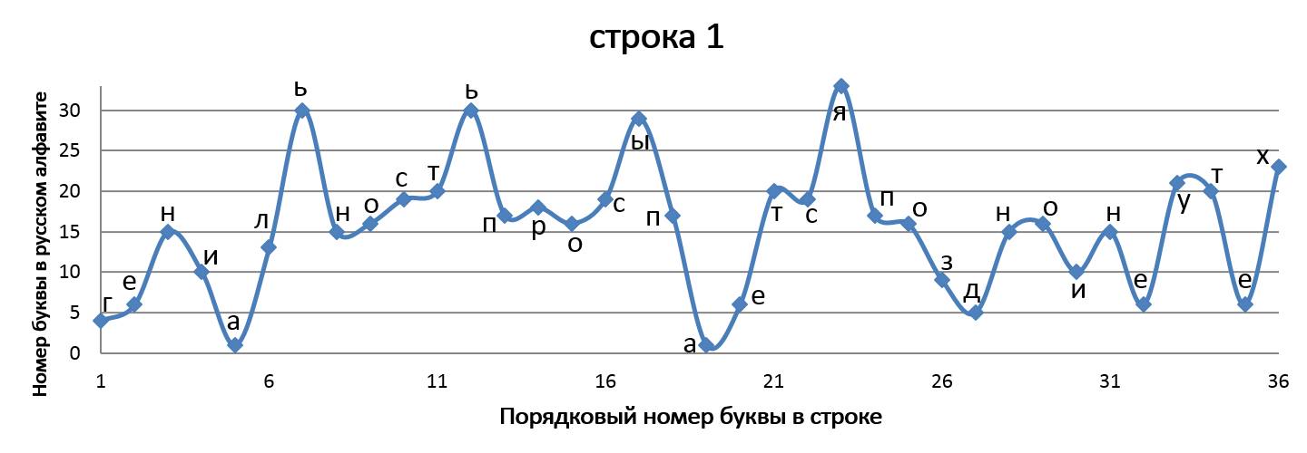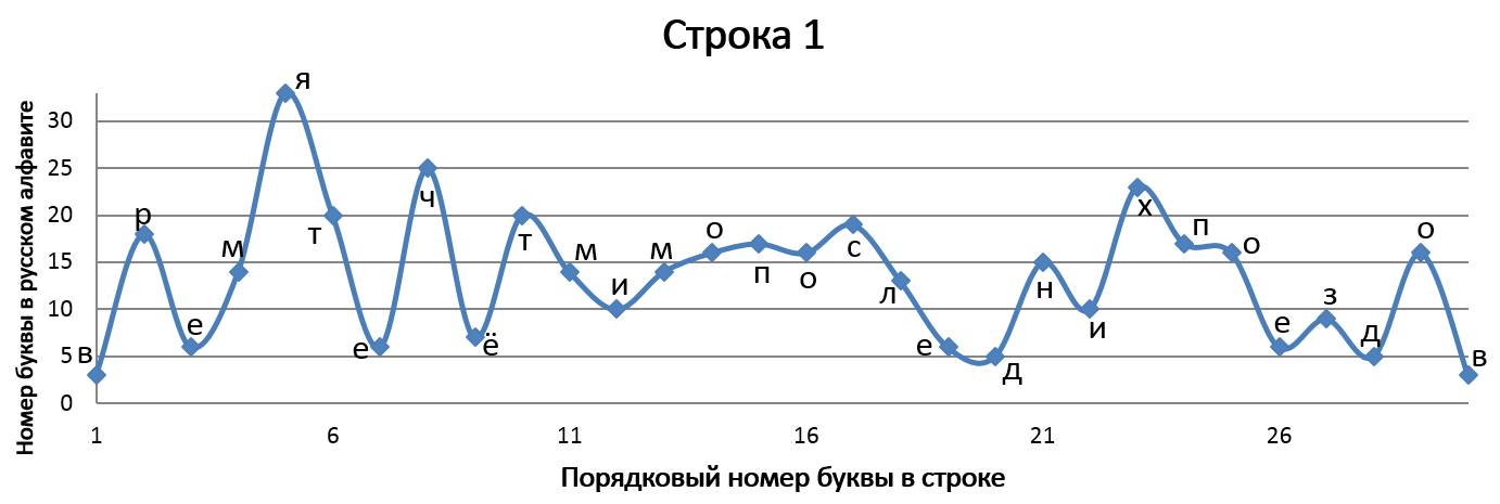 В «Графических стихотворениях» представлена попытка объединить поэзию с математикой и музыкой одновременно. Каждая строчка стихотворения записана в виде графика и каждой букве соответствует своё законное место. По оси абсцисс отложен порядковый номер буквы в строке, а по оси ординат – порядковый номер буквы в русском алфавите. Таким образом, мы видим математическую запись стихотворения, напоминающую нотную грамоту (в нотной грамоте вертикальная позиция ноты определяет высоту её звучания, а горизонтальная – порядковый номер ноты в музыкальном произведении). Кроме того, каждое записанное в виде графика стихотворение индивидуально и неповторимо, хотя каждая отдельно взятая буква не может выйти за пределы установленных рамок, что указывает на их родственную связь с маятником метронома, совершающим колебания только в определенных границах, всегда повторяющимся, но повторяющимся уникально.