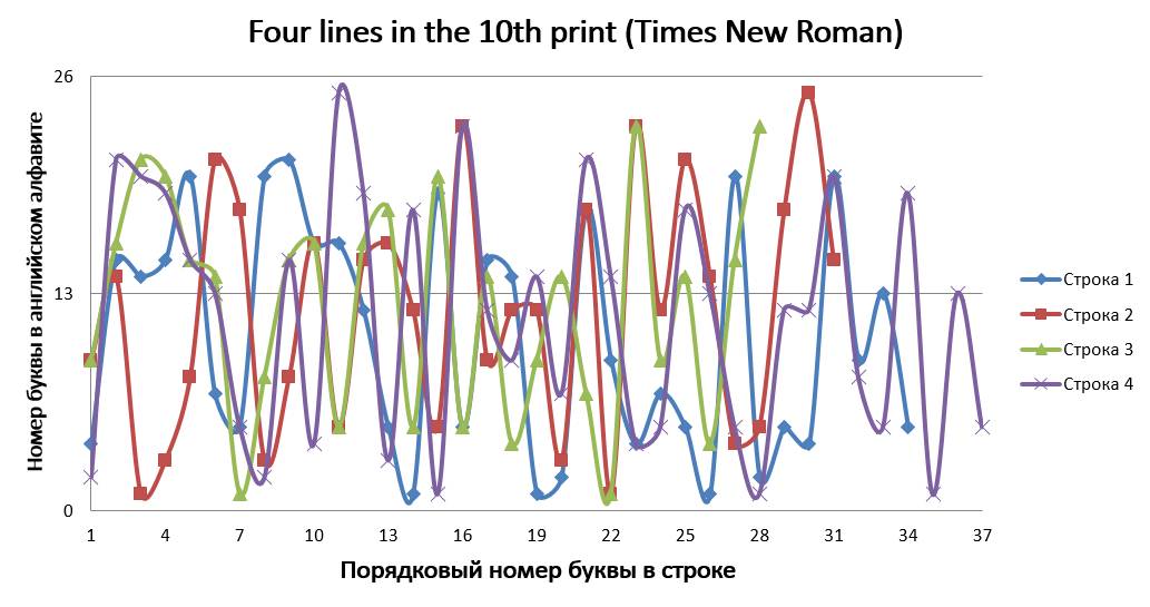 Данное стихотворение замечательно тем, что в трёх строках идёт одинаковое окончание, благодаря чему мы имеем идентично заканчивающиеся графики, но со сдвигом на единицу относительно друг друга. ⠀