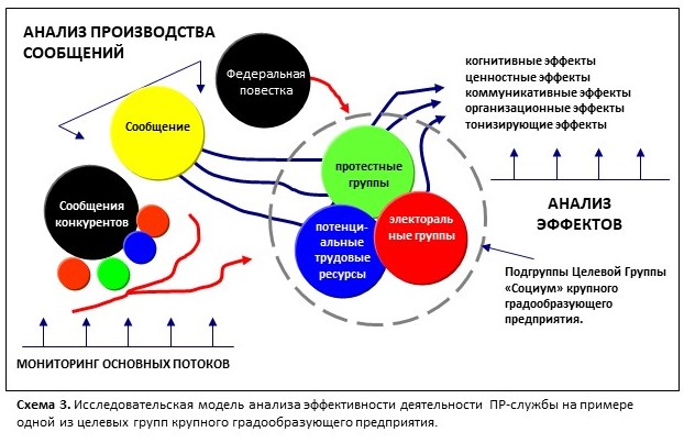Именно усиление интеграционного типа информационного воздействия, субъектами которого являются органы исполнительной власти, крупные (градообразующие) предприятия и т.п., повлекло за собой рост потребности в методах анализа эффективности «связей с общественностью».