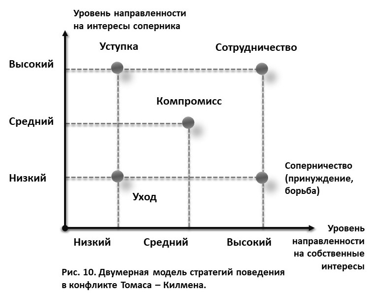 Графически двухмерная модель стратегий поведения в конфликте Томаса – Килмена представлена на рис. 10.