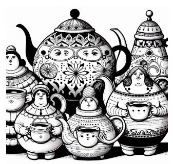 Одна такая девочка-ложечка подбежала к Асе, взяла ее за руку и повела к столикам, где сидели женщины-чашки, которые тут же усадили Асю и Тимофея за стол рядом.