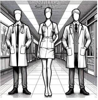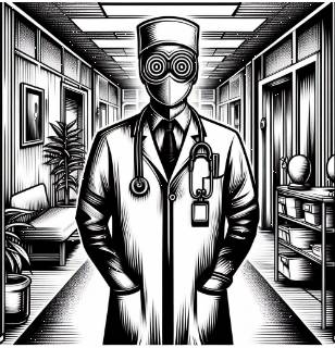 Посредине коридора стоял манекен, идущего по нему, врача.