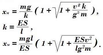 Выразим в формуле максимального растяжения Xм коэффициент жёсткости k через модуль Юнга: