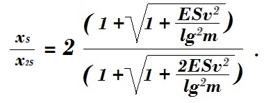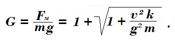 Таким образом, есть два важных вывода. Первый – это минимальное значение перегрузки для любой линейной системы равно 2. Второй вывод говорит об обратной нелинейной зависимости перегрузки от массы прыгуна m, при определённой достигнутой скорости v до начала торможения: чем больше масса, тем меньше перегрузка.