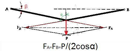 Предлагается расположить фрагмент растяжения в перпендикулярном направлении и использовать свойство V-образного разложения сил.