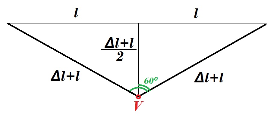 Тогда относительное удлинение каждого плеча равно (Δl / l) = 1 / (sin (120⁰/2)) – 1 = 0,155.