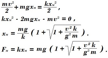 Теперь найдем максимальный коэффициент жёсткости k для максимально допустимого ускорения Aм в точке остановки падения: