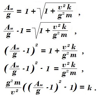 Подставив в уравнение максимального коэффициента жёсткости k для максимально допустимого ускорения Aм, получим: