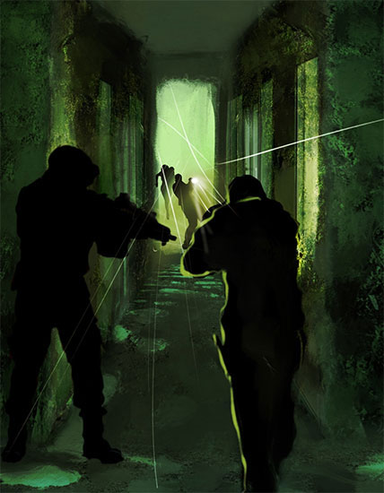 Лифт остановился на нижнем уровне атриума. Там девушка нарвалась на очередную засаду. Под ливнем пуль «Арнис» выскочила из здания и спряталась за массивной бетонной колонной, пытаясь оценить время, когда у преследователей кончатся патроны. Из стеклянного фойе тем временем приближалась другая веселая компания.