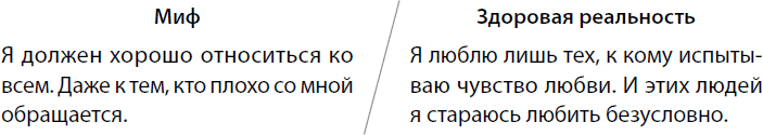 Не забывайте про первый миф и его здоровую реальность: «Я люблю лишь тех, кто, по моему мнению, заслуживает любви. Но! Всех этих людей я люблю безусловной любовью».