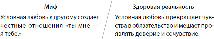 Условная любовь – это внимание, обращенное в обязательство. Такая любовь возможна, она существует и распространена, но из нее не получатся отношения, в которых есть место доверию, сочувствию и поддержке. И если мы решаем относиться так к другим, должны быть готовы к тому, что и к нам будут относиться соответственно.