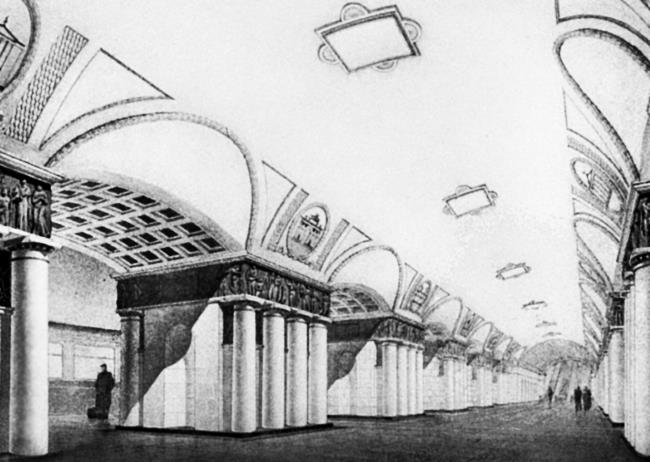 Проект станции «Нарвская» В.Ф. Белова и А.А. Леймана. 1946 г.