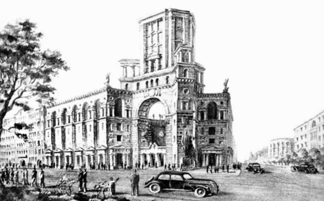 Проект здания Управления Ленинградского метрополитена и станции «Горьковская». 1944 г.