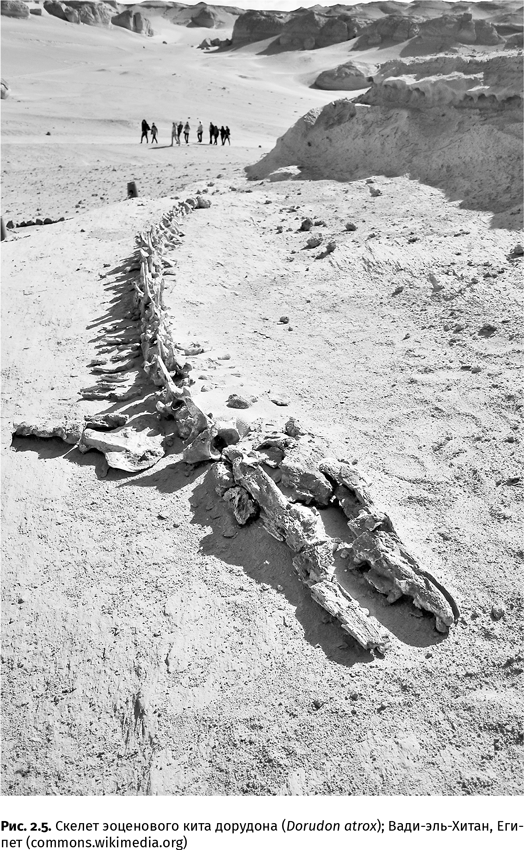 Благодаря географической привязке можно догадаться, что речь идет о месте, называемом ныне Вади-эль-Хитан, или Долина китов (во времена Геродота эта часть Египта тоже называлась Аравией), где в эоценовых морских отложениях залегают целые скелеты древних китов – многометровые и «совсем маленькие» хребты, с малозаметными ножками и длиннющими зубастыми черепами (рис. 2.5). Чем не змеи?