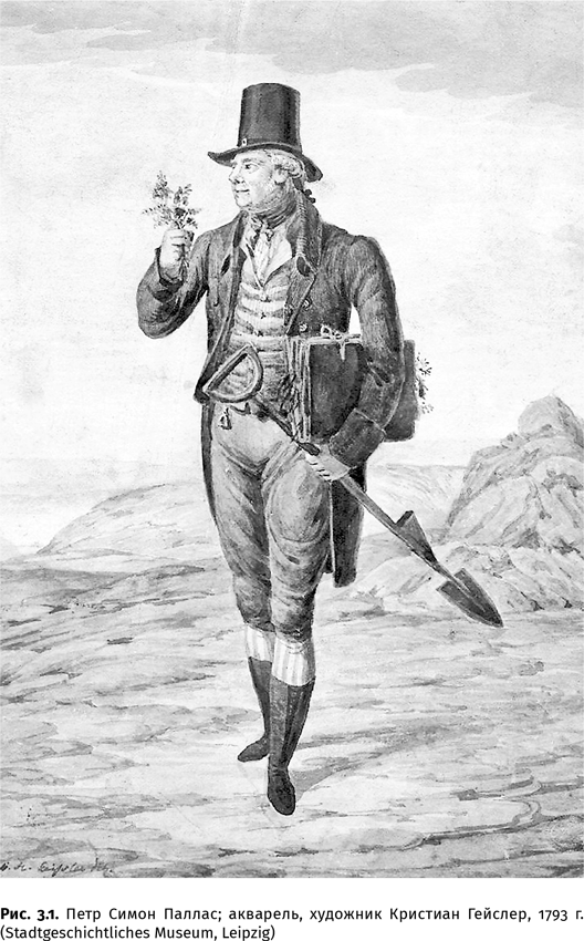 Осип Мандельштам представлял академика «ласковым путешественником» с «белыми руками концертмейстера» и «большим избалованным сибирским котом на коленях». На рисунке работы Кристиана Гейслера вдаль всматривается почти что лондонский денди: короткая косица с бантом, круглая английская шляпа, похожая на цилиндр, удобный зеленый сюртук, атласный желтый жилет, бордовый галстук на шее, кюлоты из синей замши и сапоги с плотными отворотами, под мышкой – гербарная папка, а в руке у левого бедра – лопатка и заостренный штырь для подкопки растений, которые ученый сжимает, словно шпагу (рис. 3.1). Такой человек мог не только гербарии собирать, но и напиток изобрести, известный сегодня как «Советское шампанское»…