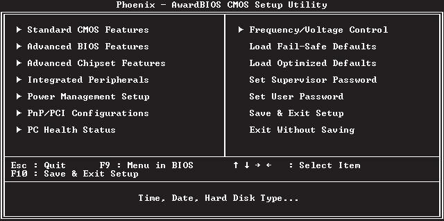 Если откроется меню, которое выглядит по-другому, не впадайте в панику. Принцип везде один. Внимательно читайте надписи на экране, они для разных видов BIOS одинаковы.