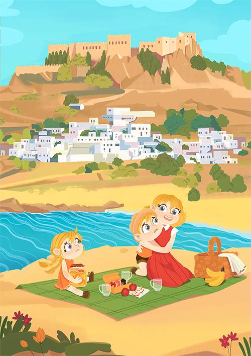 А потом, заскочив на минутку домой, взять с собой огромную корзину со вкусностями и отправиться на самый настоящий пикник на холме с видом на Линдос.