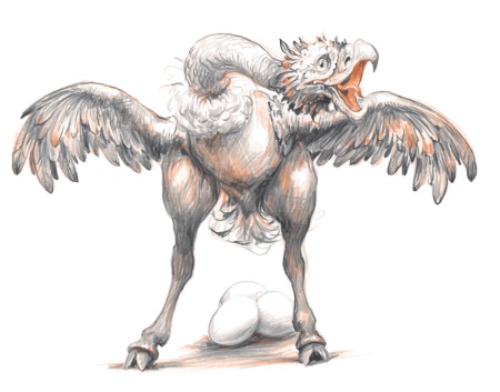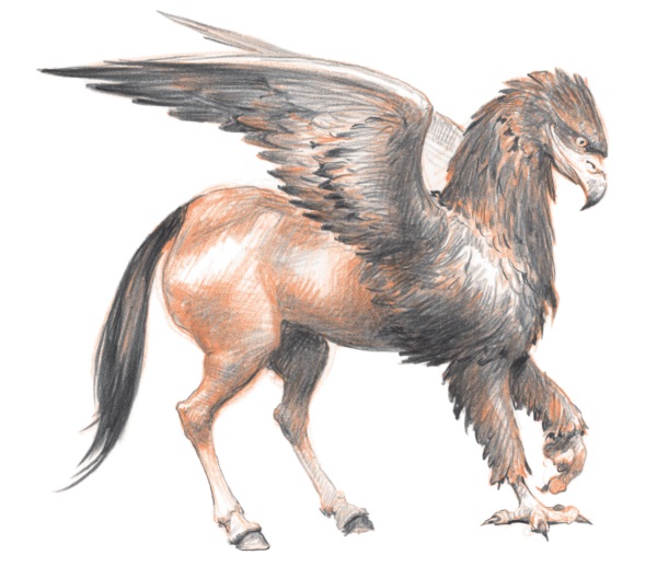 Об этом говорят, что родила его кобыла, кою покрыл гриф. От лошади у него задняя часть тулова, голова же грифья, лапы с когтями и крылья, на коих, понятно, он ловко летать умеет. Однако ж в природе грифы с кобылами не спариваются, происходит такое лишь с помощью чародейства, потому как возмечталось колдунам получить для верхового перемещения такое животное. Чародей по имени Атлант такового гиппогрифа вырастил, однако же Брадаманта, хоробрая женщина-паладин, его отобрала, а чародея прикончила. Потом сама на гиппогрифе летала, о чем кто итальянский знает, может у Ариосто прочесть.