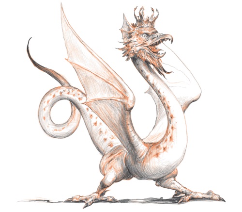 По-гречески Basiliskos’ом, по-латыни Regulus’ом зовется, то есть королем малым, поелику василиск есть всякого гада ползучего царь и монарх, властелин драконов и змей. Иначе, нежели чем иные гады, во прахе на брюхе ползающие, василиск поднявшись идет, а на голове носит корону златую. Все живое разбегается пред ним в страхе великом. Как никакое иное ядовитое чудище, василиск одним взглядом своих страшных глаз убить может. Даже птица быстролетящая замертво падает, ежели на нее василиск взор свой оборотит.