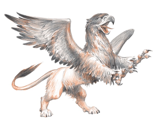 Чудовище свирепое, тело льва, а голову и крылья орлиные носящий. Зело опасный. Прежде чем подойти, дважды подумай. Был он в гербе щецинских и слупских князей, но польский орел грифа ихнего не убоялся – князь щецинский Казька Свентоборовиц, коий с мерзопакостными крестоносцами стакнулся, в полон на грюнвальдском поле битевном попал.