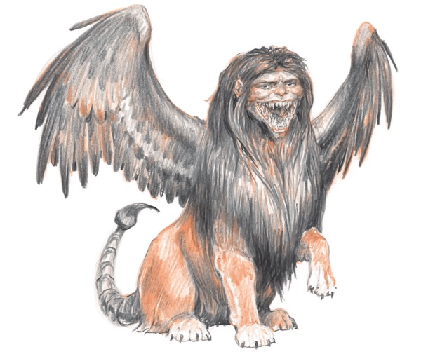 Живет в Индии. Тело у нее львиное, а голова и морда человечьи, но с пастию ужасной, в три ряда зубищ острых снабженной. Крылья у мантикоры орлиные, хвост же скорпионий, ядовитой иглой оканчивающийся. Яд свой, мгновенно отравляющий, берет мантикора из дерева богун упас именуемого. Нападает на людей из засады, убивает и сжирает так, что ни косточки, ни даже металлических молний от курток и пуговиц от штанов не остается. И когда Иоанн Богослов в «Откровении» (9:3,5) говорит: «И из дыма вышла саранча на землю, и дана была ей власть, какую имеют земные скорпионы…», «…и мучение от нее подобно мучению от скорпиона, когда ужалит человека» («et de futo exierunt lucustae in terram et data est illis potestas sicut habent potestatem scorpiones terrae»), то святой в благочестивой простоте своей никакую не саранчу (lucustae) имел в виду, а именно мантикор, которые в Судный день из пучин выйдут и будут истязать грешников жалами своими.