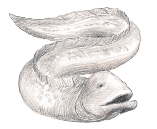 Угорь морской, потому по-гречески mirinna называется, что вокруг свивается. Мурены бывают токмо одного полу, а именно женского, а посему в целях продолжения рода копулируют с самцами змей. Потому-то рыбаки, кои мурен из-за их вкусного мяса отлавливают, завлекают их, свистя и змеиному шипению подражая, а глупые мурены плывут прямо в сети, думая, что на гон идут, а идут-то на сковороду.