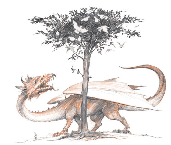 Сие есть дерево в Индии растущее. Сладкие и вкусные родит оно плоды, огромное для голубей лакомство, потому-то в сени дерева того вечно голубиц полно. Дракон, коий голубицам враг, к дереву тому подкрадывается, но в тень его войти не смеет, ибо боится. Тогда принимается дракон вокруг дерева периндена расхаживать и ждать, а вдруг да какая из голубиц из тени выпорхнет на свою погибель.