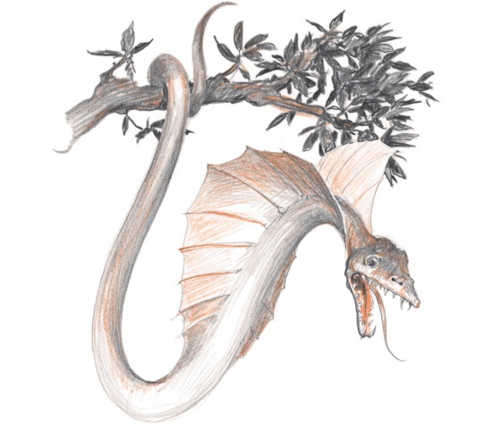Говорят, мол, это есть змей летающий[14], так и Лукан в своих «Фарсалиях» зовет ее: jaculique volantes, однако ж это не совсем правда, ибо якул отнюдь не летает, а в кронах деревьев отсиживается и сверху неожиданно на проходящих с быстротою страшною и силой, яко убийственный снаряд, кидается. Отсюда и название его берется, от jaculor – метать снаряд, пронзать.