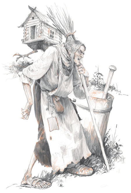 Преотвратнейшая ведьма, мерзкая людоедка с огромными железными зубами, костлявая и горбатая баба с длинным носом, украшенным большущей бородавкой, нередко (в русском фольклоре) одноглазая и хромая, с одной усохшей («костяной») ногой. Проживает в лесных дебрях и темных пущах в самоходной избушке на курьих ножках, а на короткие рейды отправляется в ступе, заметая за собой следы метлой. Известна из таких сказок, как «Три царства», «Царь-девица» и «Ивашка». Порой бывает связана – даже супружескими узами – с другой фигурой русского фольклора, Змеем Горынычем.
