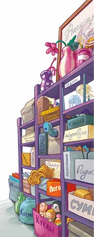 Смутившись, Антон всё же проследовал за мужчиной в большое помещение, оформленное как старомодная лавка. Он изумился. В высоких шкафах были расставлены аккуратно подписанные коробки. На букву П, к примеру, были «ПАНАМКИ», «ПЛЮШЕВЫЕ МЕДВЕДИ», «ПЛАСТИК» и ещё что-то под названием «ПОГО», что бы оно ни значило. Краем глаза Антон взглянул на полку, где были коробки на букву С. Там были «СВАДЕБНЫЕ ТУФЛИ», «СЕРЁЖКИ» и даже «СКАКОВАЯ УПРЯЖЬ». Только коробки с надписью «СОБАКИ» не было. Разумеется.