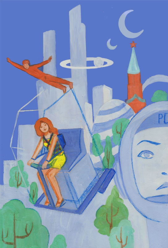 От прежней Москвы, в которой раньше она не раз бывала, не осталось и следа. Сейчас вся столица напоминала собой деловой район «Москва-Сити»: небоскребы, футуристические здания, причудливые и необычные конструкции, которые стали неотъемлемой частью реальности. Всё вокруг говорило о том, что девушка попала в город будущего. А ещё, что очень понравилось Ангелине, – Москва буквально утопала в зелени: повсюду росли деревья, кусты, цветы, трава, как будто город был построен в лесу. Девушка всё разглядывала и разглядывала пейзаж, ведь с воздуха всё выглядело по-другому: и Кремль, и Красная площадь, и Большой театр, и Арбат, и Останкино, и Москва-река, и Воробьевы горы…