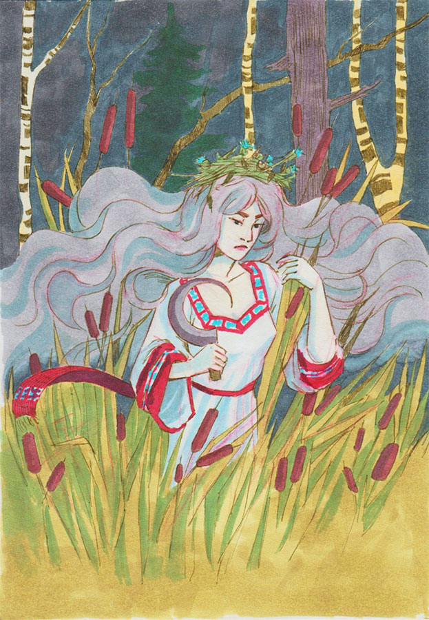 У гущавинi лiсу, в буреломi,Де не живе нi звiр, нi птах,Мара сидiла у свiй берлозiIз очерету, спала в бур'янах.Й ховалась майже вiд усiх,Бо не любила зовсiм нiкого.Ненавидiла люто вона смiх,Не знала про вiдраду нiчого.Колись вона людиною була,I мешкала звичайно, як i всi.Гарненькою дiвчиною жила,I спокiй, і добро було в життi.Немудрий був уклад її буття,Безтурботно їй жилось та тихо.Й тут, рiзко, – охопили почуття,Дуже закохалася вона, на лихо.Обранець, здавалося, любив,Оповiдками розум затуманив.Солодким ядом серце отруїв,Була вона неначе у дурманi…Та радiсть припинилась швидко,Насправдi вiн їй голову морочив.I стало тут дiвчинi бридко, гидко,Немовби її злий чаклун зурочив.Пiшла до вiдьми за порадою тодi,Просити, щоб бiду начаклувала,Благала помогти вона собі в нуждi,Про наслiдки – уявлення не мала.Здiйснилося, – загинув ошукач…I серце охопила жалiсть, туга…Нiц не вiдмiнити, хоч заплач…Скувала її тiло Фатуму наруга…I тут, лишень, вона збагнула, —Теперь життя не буде, як було…Тодi вона у хащi лiсовi прибула,Й побудувала там собi житло…Так i не змогла трагедiю забути.Тоді із Щезником угоду склала, —Карати зрадникiв та Марою бути,Таких не шкода, їм не буде мало!Тепер у неї спiвчуття не має…Як хтось забешкетує, зрадить,Мара одразу жорстоко покарає.Розкаяння їй бiльше не завадить!